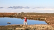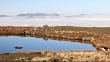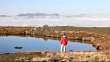 A mountaineer on Red Screes in the Lake District, above valley mist caused by a temperature inversion, UK.