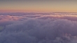 Aerial shot above the fluffy clouds colored in pink by the setting sun. Shot in USA.