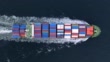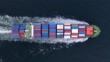Aerial view container ship sailing on sea to transport cargo at port. - 4K stock video