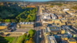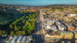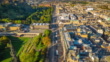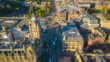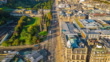4K Aerial view hyper lapse of above princess street in Edinburgh new town, Scotland, United Kingdom, Transportation and Travel concept