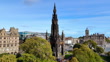 Aerial view of Edinburgh Scott monument, aerial view of the Scott Monument located in the Old Town and Princess Street in Edinburgh, Scott Monument in Edinburgh city centre, Gothic Revival architecture in Scotland, A Victorian Gothic monument to the Scott