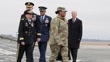 DOVER, DELAWARE - FEBRUARY 2: (AUDIO OMITTED) Air Force Lt Col. Crystal Glaster, Air Force Mortuary Affairs Operations deputy commander; Lt. Gen. Jody Daniels, Chief of U.S. Army Reserve; Gen. Randy George, Chief of Staff of the Army; Chairman of the Joint Chiefs of Staff Air Force Gen. Charles Q. Brown, first lady Dr. Jill Biden, and U.S. President Joseph Biden moved into position during a dignified transfer at Dover Air Force Base on February 2, 2024 in Dover, Delaware. U.S. Army Sgt. William Rivers, Sgt. Breonna Moffett, Sgt. Kennedy Sanders were killed in addition to 40 others troops were injured during a drone strike in Jordan. (Footage by Kevin Dietsch/Getty Images)