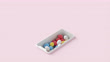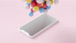 A mock-up of a smartphone from which many colored balloons take off. 3d render animation.