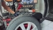 Auto mechanic have expertise and skill in the repair of the cars, using special machine to testing rotation after putting new tires on alloy wheels in the garage. Wheel balancing. Tire fitting. Car maintenance and services. Comprehensive auto repair cent stock video