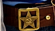 A close up shot of a communism symbol on a belt.