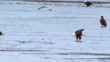 Compilation of a bald eagle taking a dead fish from a scavenging ring-billed gull on the melting Mississippi River - 4K stock video