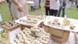 Different appetizer canape on white plate on a table for outdoor wedding and events. - HD stock video