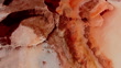 A dramatic aerial view reveals the red cliffs and craters of a Martian-like canyon. - 4K stock video