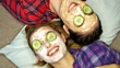 Girls with face masks and slices of cucumber on their eyes