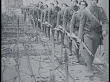 MOT 1938: MAGINOT LINE BUNKERS: WS French soldiers marching by barbed wires. Soldiers entering bunkers. LA INT Soldiers descending stairs. WS Soldiers in full gear walking through tunnel.