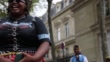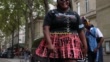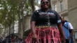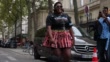 PARIS, FRANCE - OCTOBER 2: (SLOW-MO) Gabriella Karefa-Johnson poses outside Valentino show wearing a t-shirt and pleated skirt during Paris Fashion Week - Womenswear Spring/Summer 2023, on October 2, 2022 in Paris, France. (Footage by Valentina Frugiuele/Getty Images)