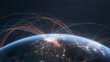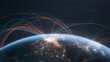 Highly detailed 3d generated globe with glowing connection lines between big cities. Perfectly usable for all kinds of topics related to international business and finance, global data networks or the transmission of digital and real viruses.Created from textures by NASA:https://visibleearth.nasa.gov/images/55167/earths-city-lights, https://visibleearth.nasa.gov/images/73934/topography