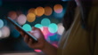 Close-up:Hand using smart phone at night in the City - 4K stock video