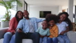 Happy African American family having fun watching tv together at home while relaxing in the living room - 4K stock video