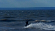 SLOW MOTION: Kiteboarder rides on the board on the waves. Summer sunny evening. - HD stock video