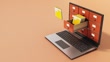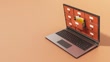 3D Loopable Animation of Laptop With File Cabinet Drawers and Flying File Folders on Peach Background. Data Storage and Transfer Concept - 4K stock video
