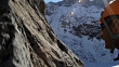 Mature guide ascends high mountain pinnacle - 4K stock video