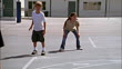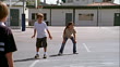 Medium shot boy kicking ball and running in kickball game on playground - HD stock video