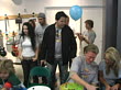 Michael Vartan, Davey Johnstone (seated), Amy Lee, Josh Holloway, American Minor, Greg Gunberg, Breckin Meyer, and Anthony Michael Hall (seated) at the Gibson Guitar 'Paint For PEP' Charity Event at Gibson Baldwin Showroom in Beverly Hills, California on