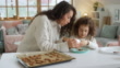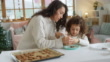 Mother and cute little daughter decorating christmas cookies together
