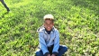 A mixed race African-American and Caucasian 10 year old boy sitting on grass. Little brother, 8, runs up, pushes him playfully. Then they sit side by side, cross-legged, smiling and waving at the camera.