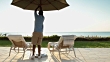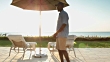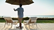 Pool attendant at hotel taking down parasol. - 4K stock video