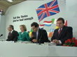 OECD Report; INTCMS John Major (Prime Minister) seated at dining table addressing diners (not heard)EXTCMS John Major (Prime Minister) intvwd SOT- Things like the social chapter and the minimum wage sound attractive but cost people their jobs/ Europe doesn't meet itTransport HsMS John Prescott MP (Shadow Employment Sec), Gordon Brown MP (Shadow Chancellor), Margaret Beckett MP (Acting Labour ldr) and JackCunningham MP (Shadow Foreign Sec) take seats at Euro-election pfk CMS BeckettCMS Gordon Brown MP (Shadow Chancellor) speaking at pfk SOT- It is wrong to say that OECD document supports Tory policy/ It is not opposed in principle to a minimum wageCMS Beckett and CunninghamEXTCMS Paddy Ashdown MP (Lib Dem ldr) intvwd SOT- The OECD opposes a national minimum wage - so do we/ It also emphasises the need for growth and development which the Government are not doingSmith SqLMS Heseltine and Fowler beside Tory Euro-Elex billboard (on lorry) as Fowler point to tape showing "Its official - Socialist policies cost jobsTLMS Labour Campaign truck along in Smith Sq with billboard showing "Come in Number 10, your time's up" ZOOM IN