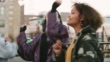 4k video footage of a group of female friends dancing together on a rooftop in the city