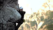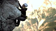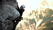 HD1080p: Male rock climber dangling on the edge of a steep cliff struggles for his next grip.
