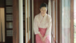 The hostess of a traditional Japanese ryokan, wearing a pink yukata.