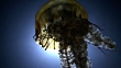 Sea nettle jellyfish (Chrysaora fuscescens) trails tentacles in dark water, Pacific Ocean - HD stock video