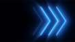 Seamless loop. Blue neon glowing arrows. Direction banner. Futuristic light on black background.