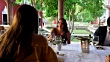 MS Smiling guests enjoying outdoor wedding reception dinner - 4K stock video