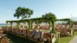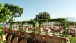 Table setting and bride and groom table at a wedding banquet decorated with flowers - 4K stock video