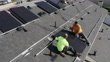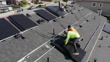 Team of Workers Installing Solar Panels on Residential Rooftop in California - 4K stock video