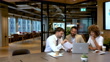Three business people meeting and discussing a document in the office - 4K stock video