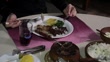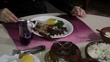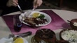Woman's hands eating a feijoada on the table of her house - HD stock video