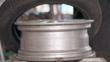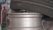 Worker mounting tire on wheel rim using special machine. Mechanic have expertise and skill in the repair of the cars, working s putting new tires on alloy wheels in the garage. Car maintenance and services. Car insurance. Comprehensive auto repair center.