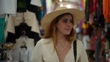 Young woman looking around while walking through the market - 4K stock video